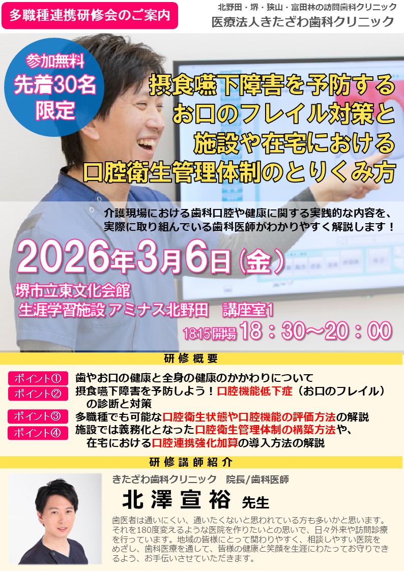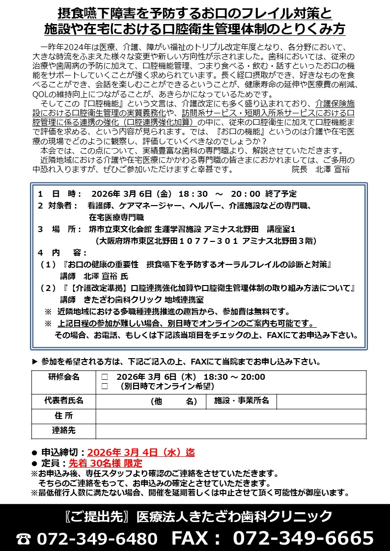 この度、当院院長の北澤が講師として下記の研修会を実施いたします。